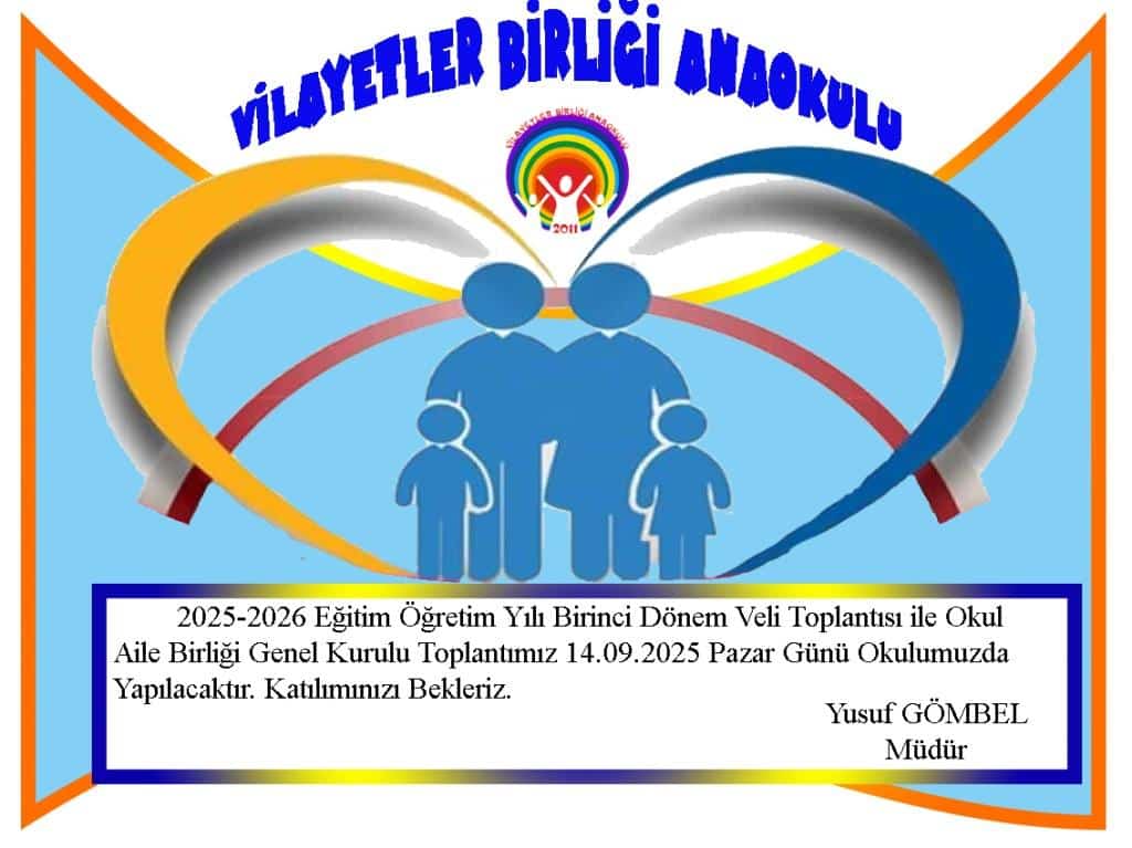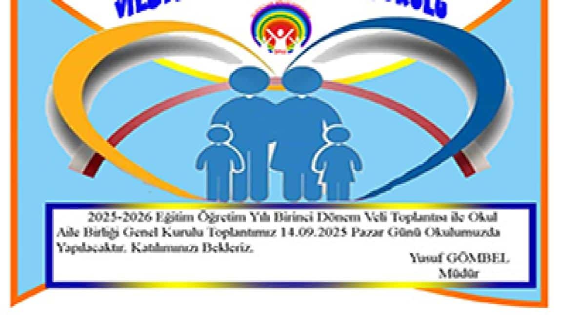 2025-2026 EĞİTİM ÖĞRETİM YILI OKUL AİLE BİRLİĞİ GENEL KURULU, OKUL AİLE BİRLİĞİ YÖNETMELİĞİNİN 10.MADDESİ UYARINCA 14.09.2024 PAZAR GÜNÜ 10.00-11.00 SAATLERİ ARASI OKULUMUZDA YAPILACAKTIR.
